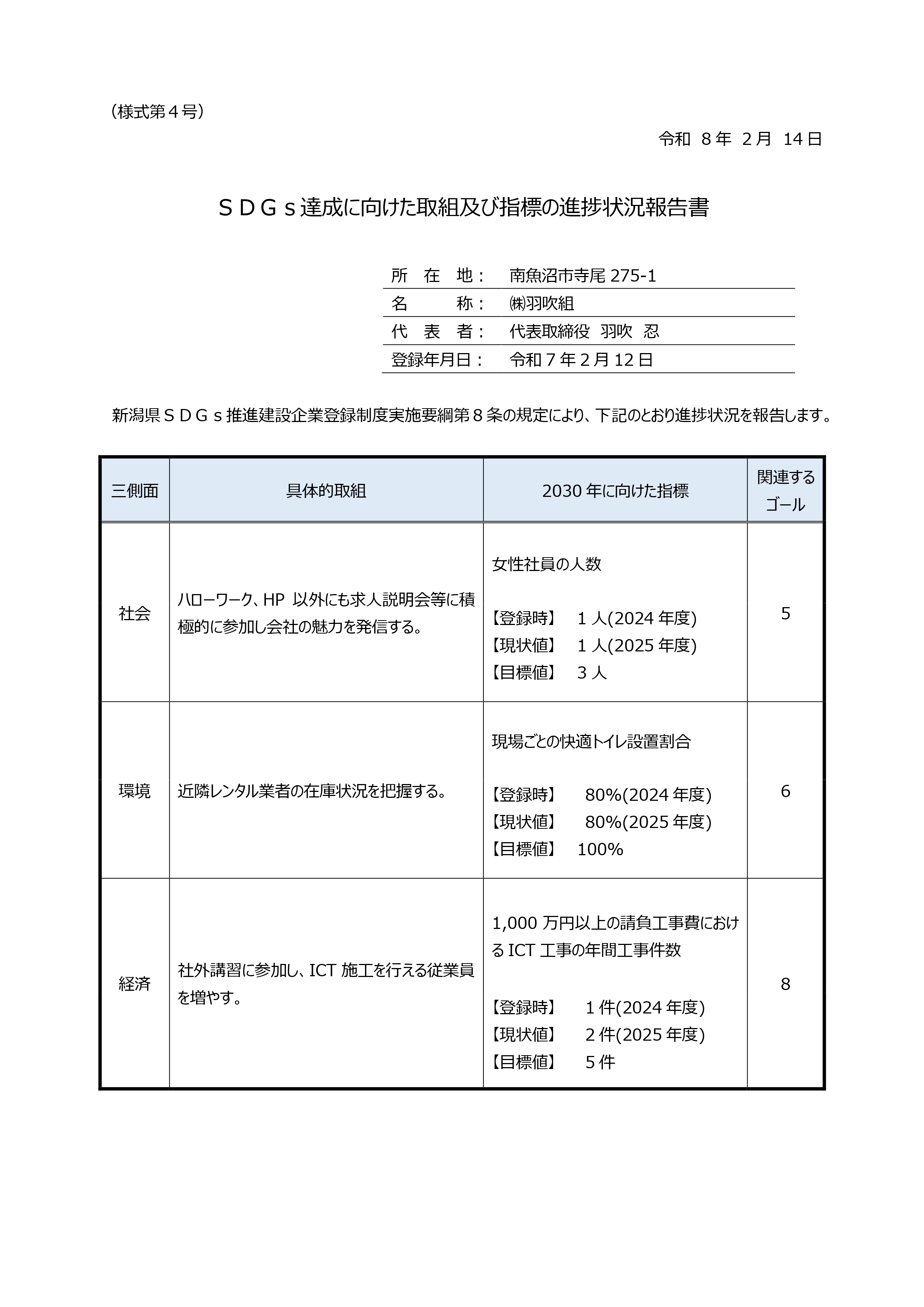 当社ではSDGs達成に向けた取組を行っており、新潟県SDGs推進建設企業にも登録しています。